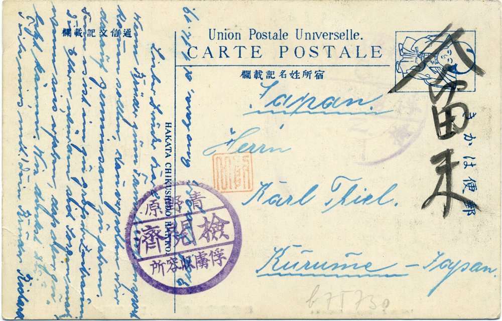 ab 11.1914 gefangen im Lager Kurume (Gef.-Nr. 788, Heimatort: Halensee; IRK-Kontakt: Kanzleirat Christian Tauch, Berlin-Wilmersdorf, Joachim-Friedrich-Str. 10);